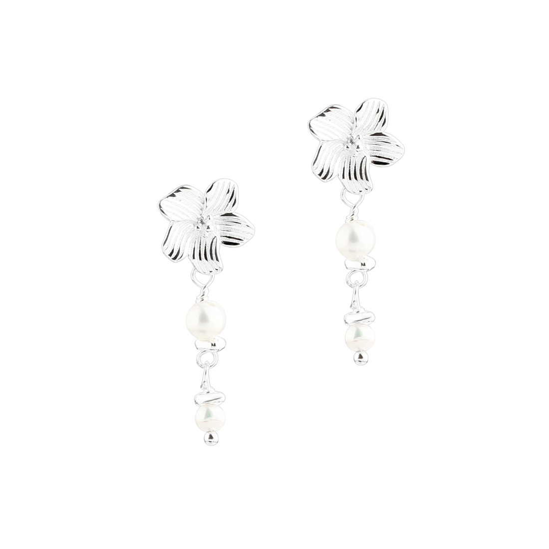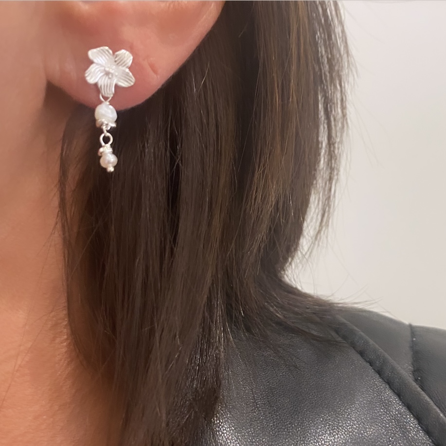 Flotte blomster øreringe i sølv med hvide perler fra Aqua Dulce