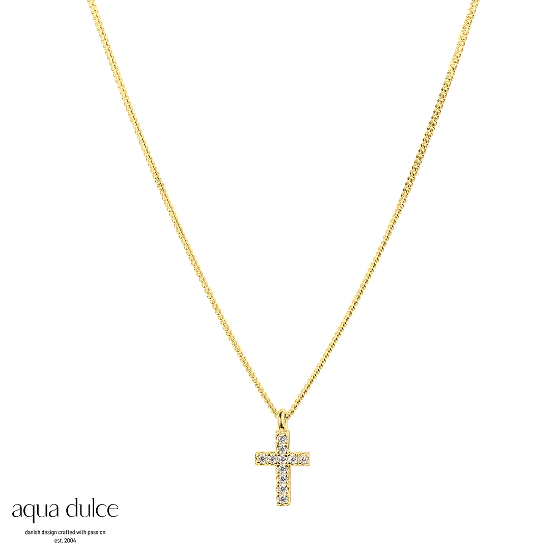 Aqua Dulce kors halskæde i forgyldt 4533