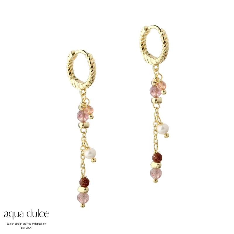 Klassiske hoops med vedhæng af perler i smukke varme nuancer fra Aqua Dulce PEACHY kollektion.