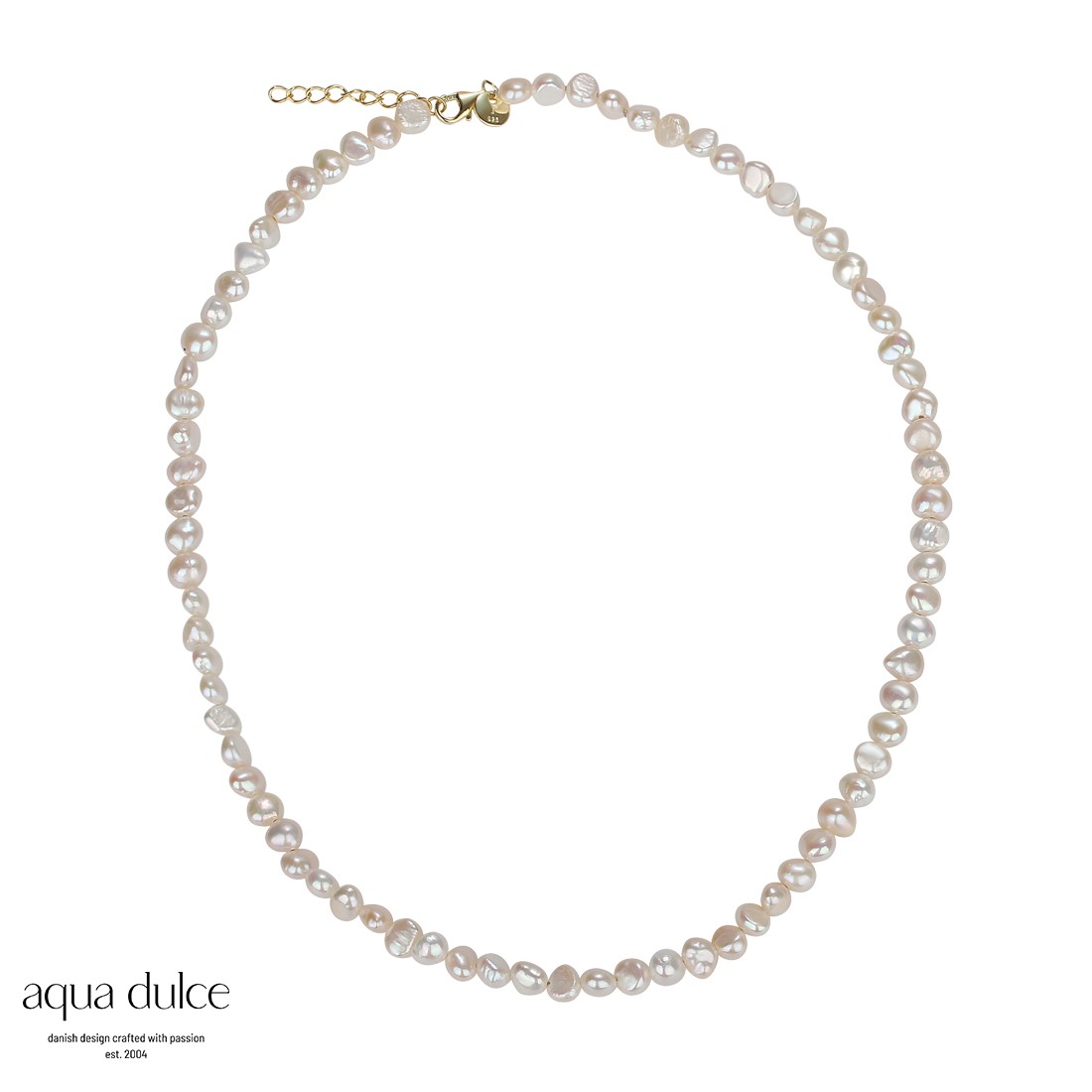 Den klassiske perle halskæde med hvide barokke perler fra Aqua Dulce.