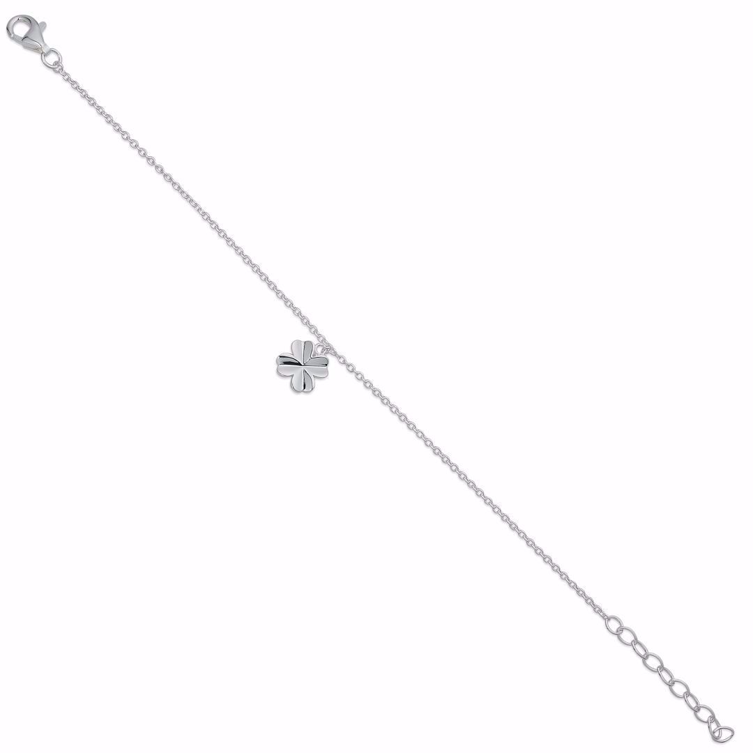 Armbånd med firkløver vedhæng 14cm+3cm i sølv 81033