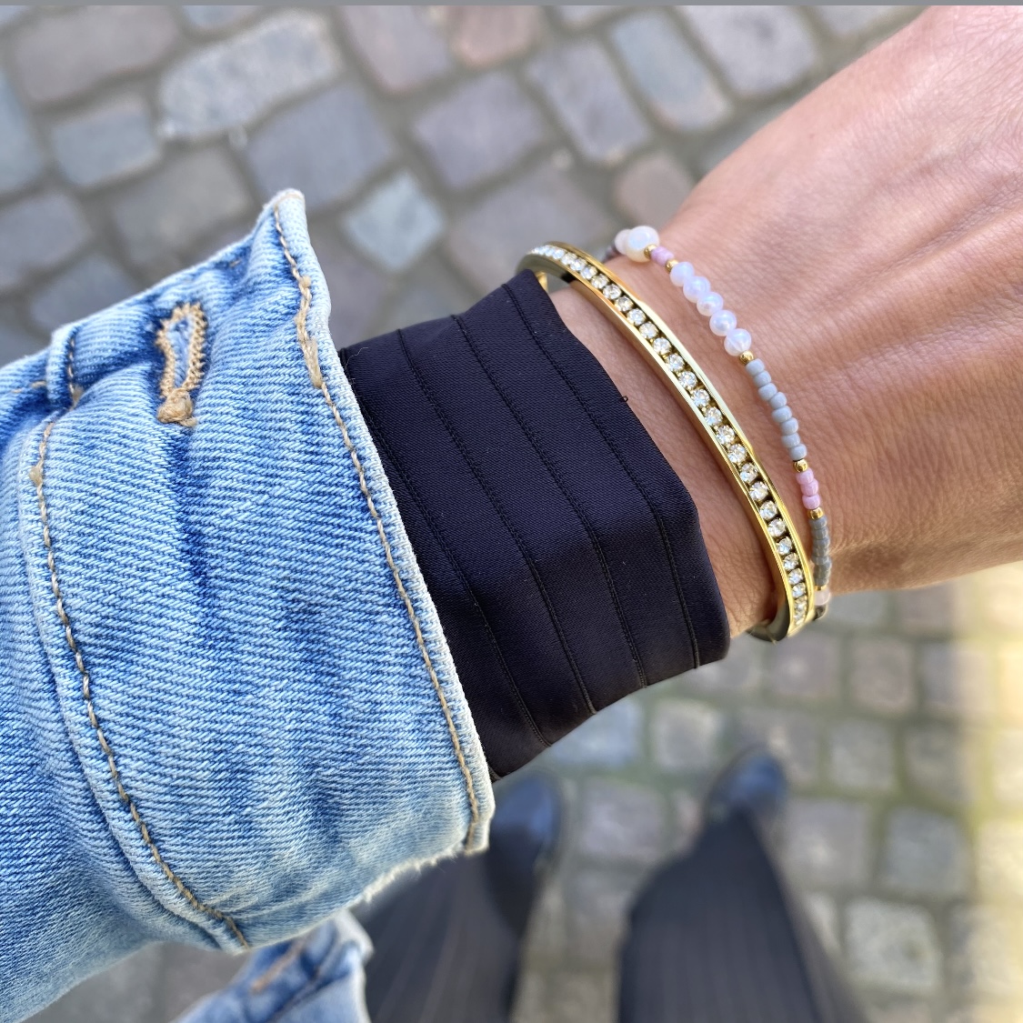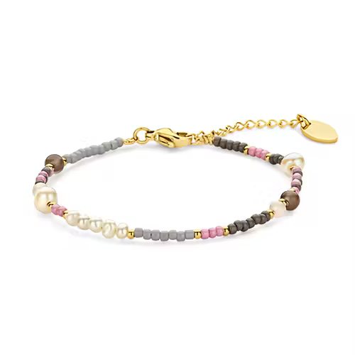 Et lækkert forgyldt stålarmbånd med perler i det skønneste farvemix fra hollandske CO88.