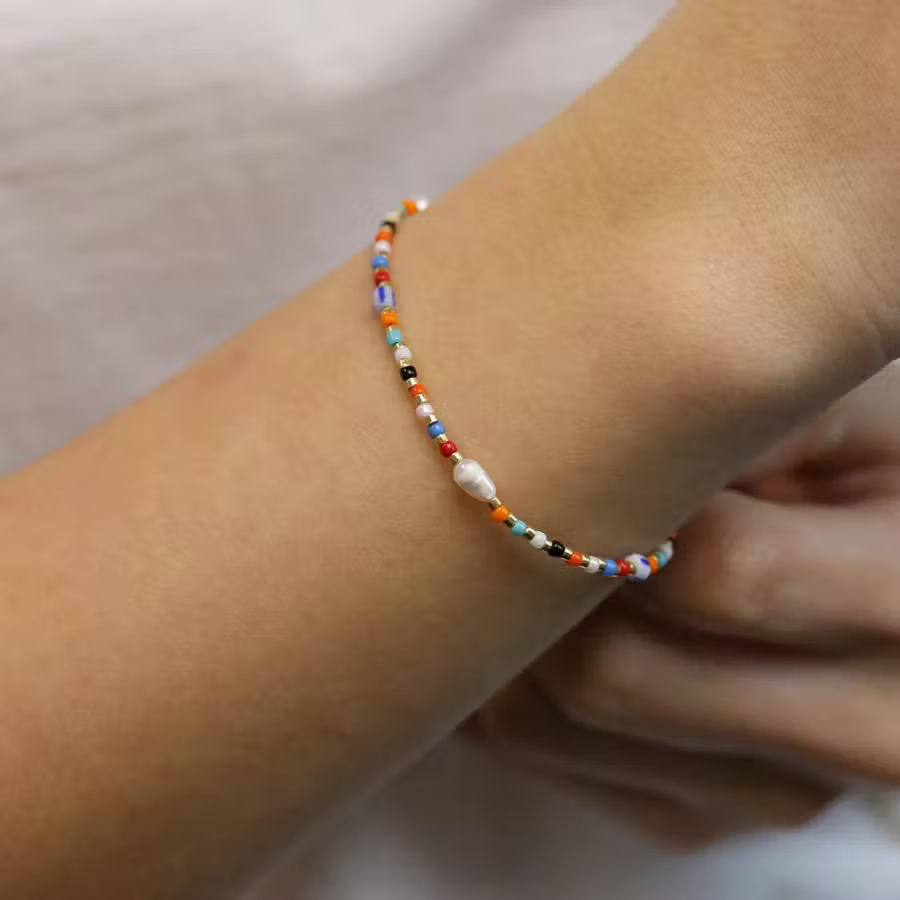 Det perfekte armbånd til at pifte dit outfit op. Armbåndet er fyldt ud med en masse perler i forskellige farver, og er nem at style sammen med andre armbånd.