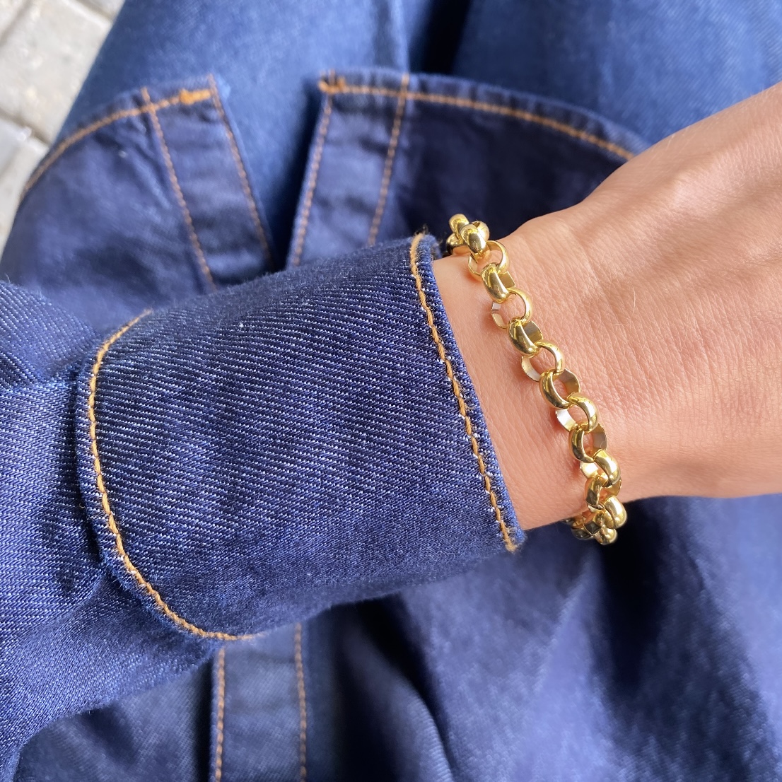 Lækkert vandfast armbånd i guldfarvet stål som er helt perfekt at style sammen med andre armbånd eller bær det alene for et enkelt look. ROLO armbåndet er fra CO88. De små runde led er i et chunky design, så det giver lidt fylde til armbåndet.