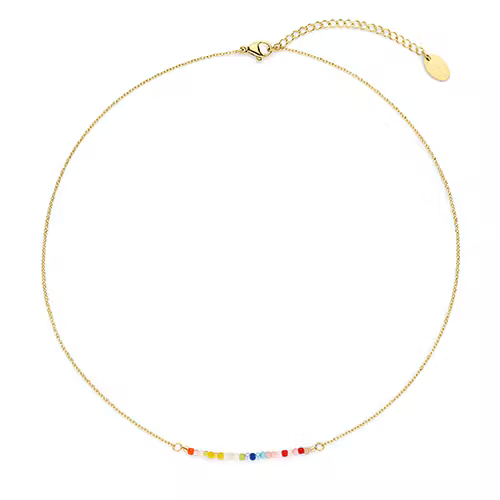 CO88 halskæden er i guldfarvet stål med en række af sten i pang farver.
