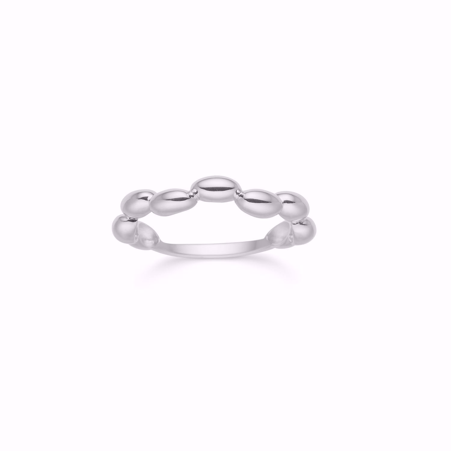 Denne smukke CORRY ring i 925 sterling sølv har et elegant og moderne design med en række afrundede, perlelignende former, der skaber et harmonisk og sofistikeret udtryk. De glatte, polerede overflader reflekterer lyset smukt, hvilket giver ringen et luksuriøst og stilfuldt look.