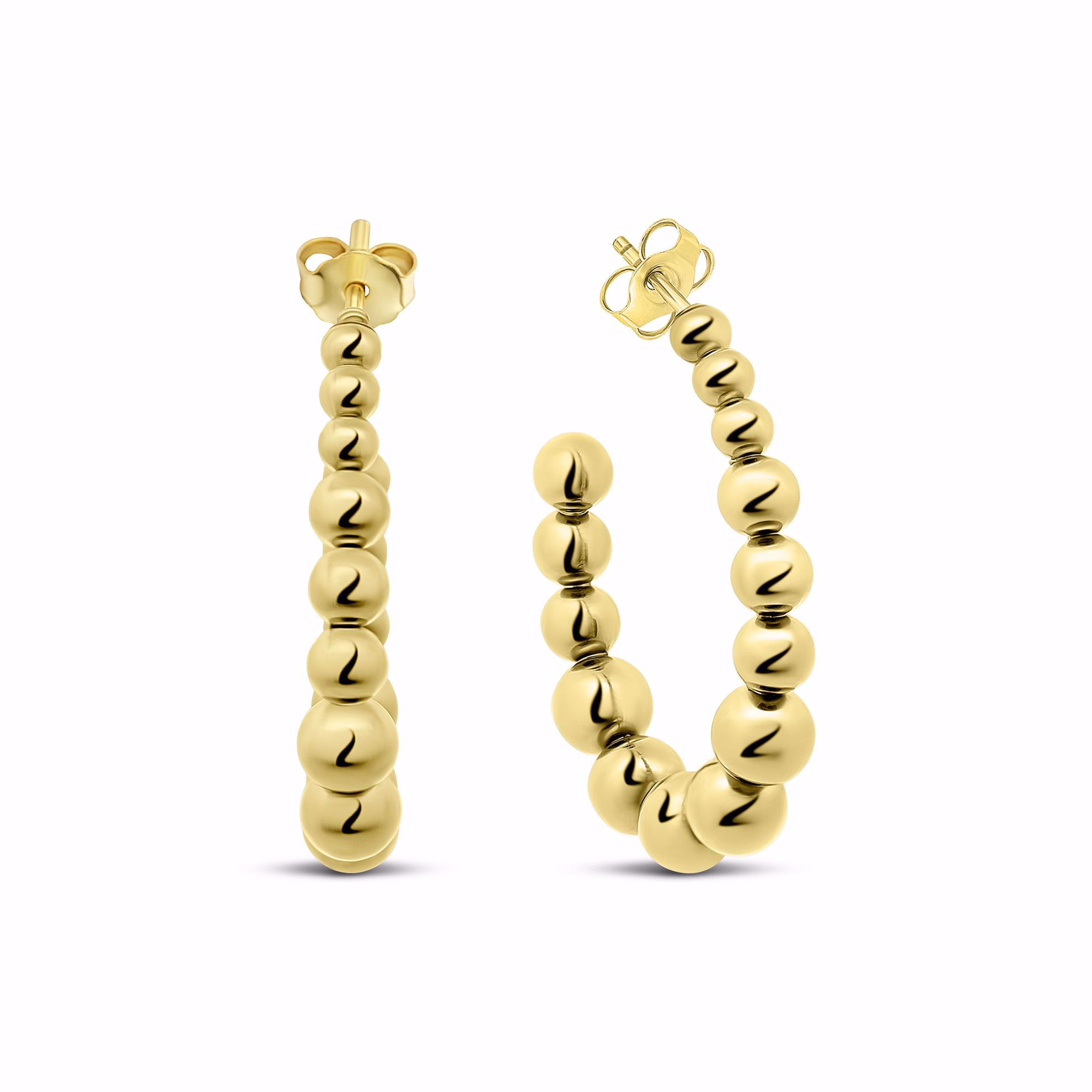 Kugle øreringene er i guldfarvet stål hvor kuglerne har en diameter på 4mm