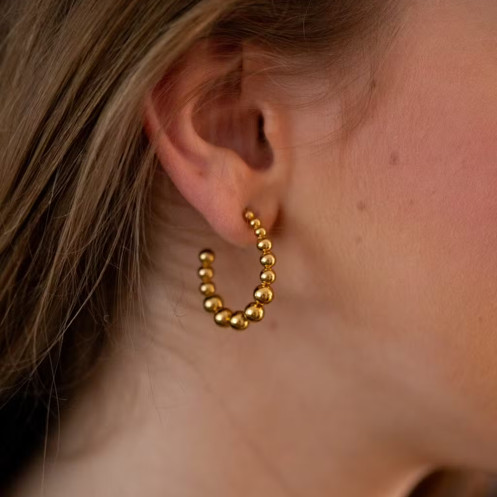 Smykketrenden med kugler fortsætter og de her creoler / hoops er et musthave i din smykkesamling.