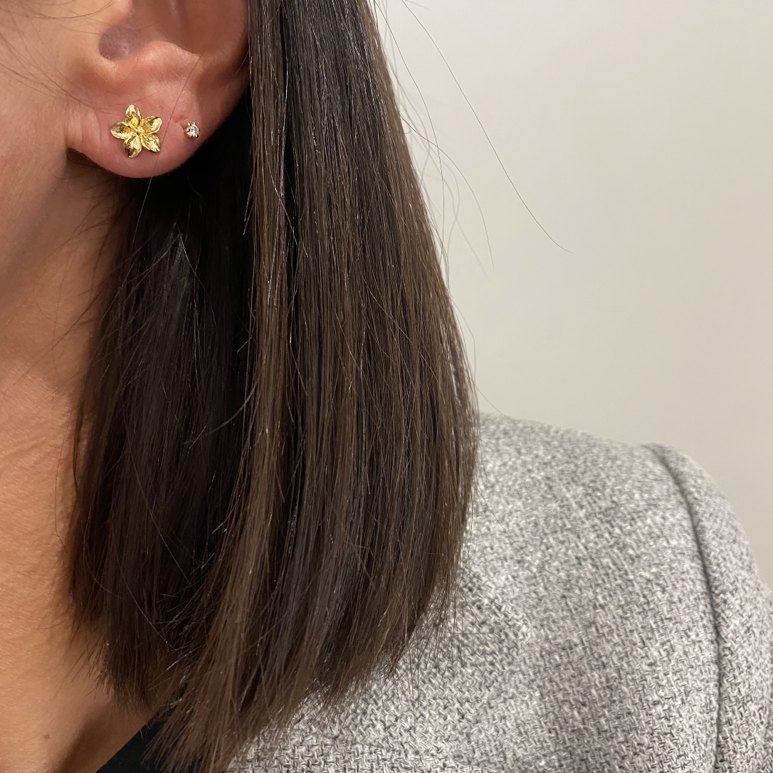 Smukke blomster øreringe med en rustik overflade fra Seville Jewelry´s FIORE kollektion.