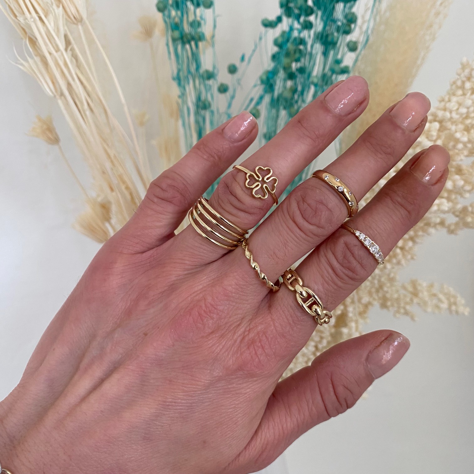 Smuk firkløver ring fra Guld & Sølv Design.