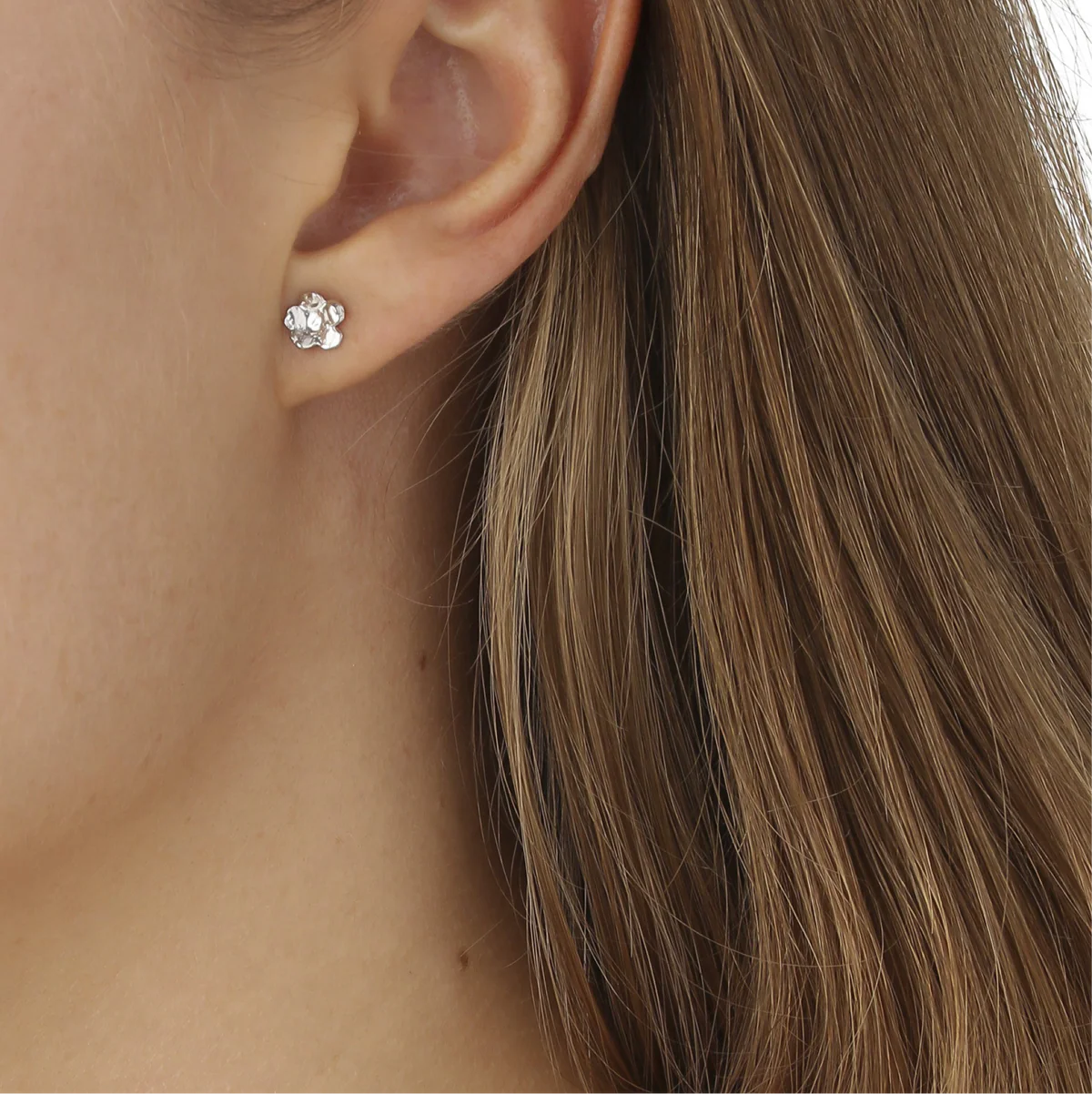 Ørestikkerne er håndlavet i genanvendt 925 sterlingsølv og belagt med rhodium, som giver en smuk, sølvhvid glans og ekstra holdbarhed. Smykket er skabt med fokus på kvalitet, detaljer og bæredygtighed – og passer perfekt til både hverdag og særlige anledninger.