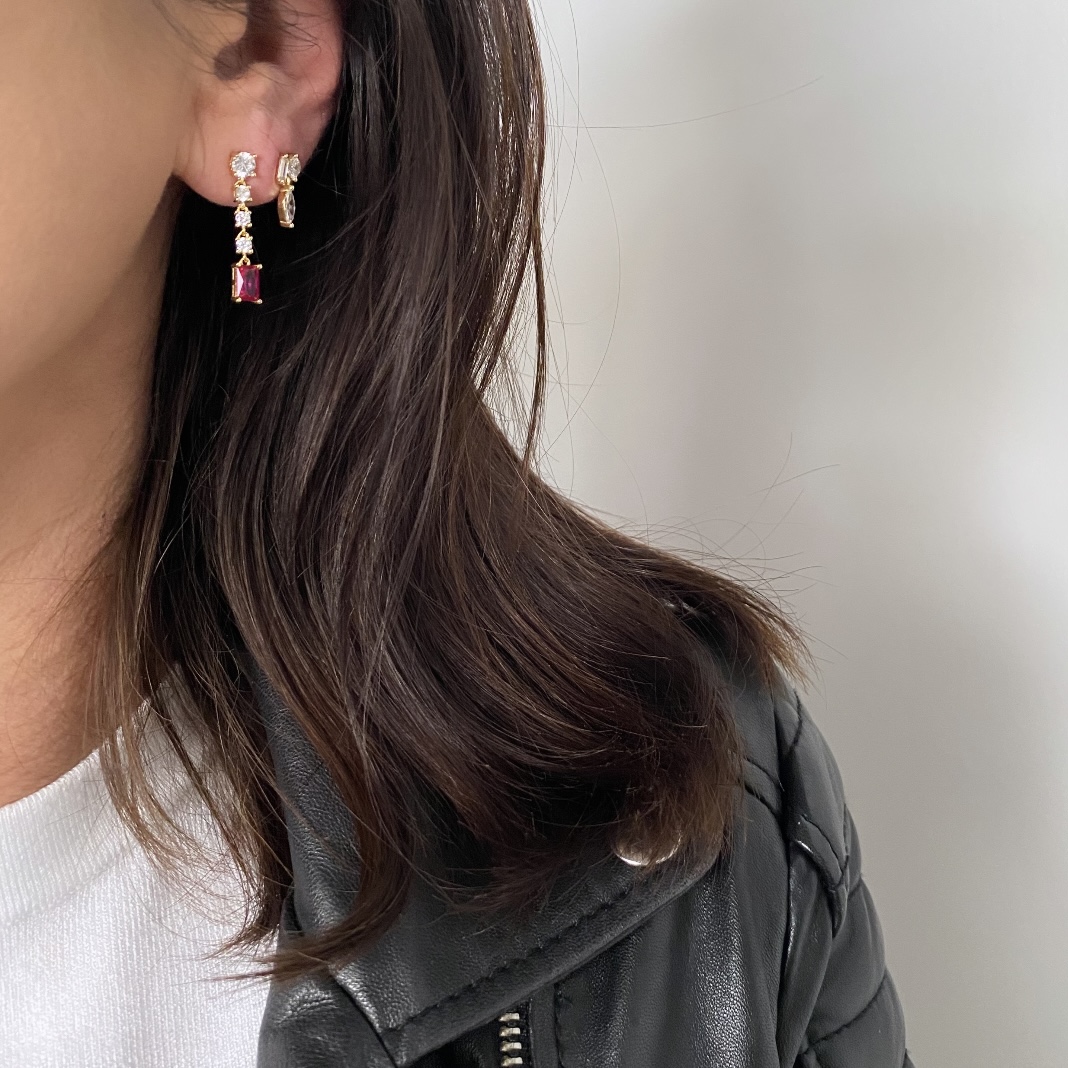 Forgyldte øreringe med pink og klar zirkonia – Seville Jewelry