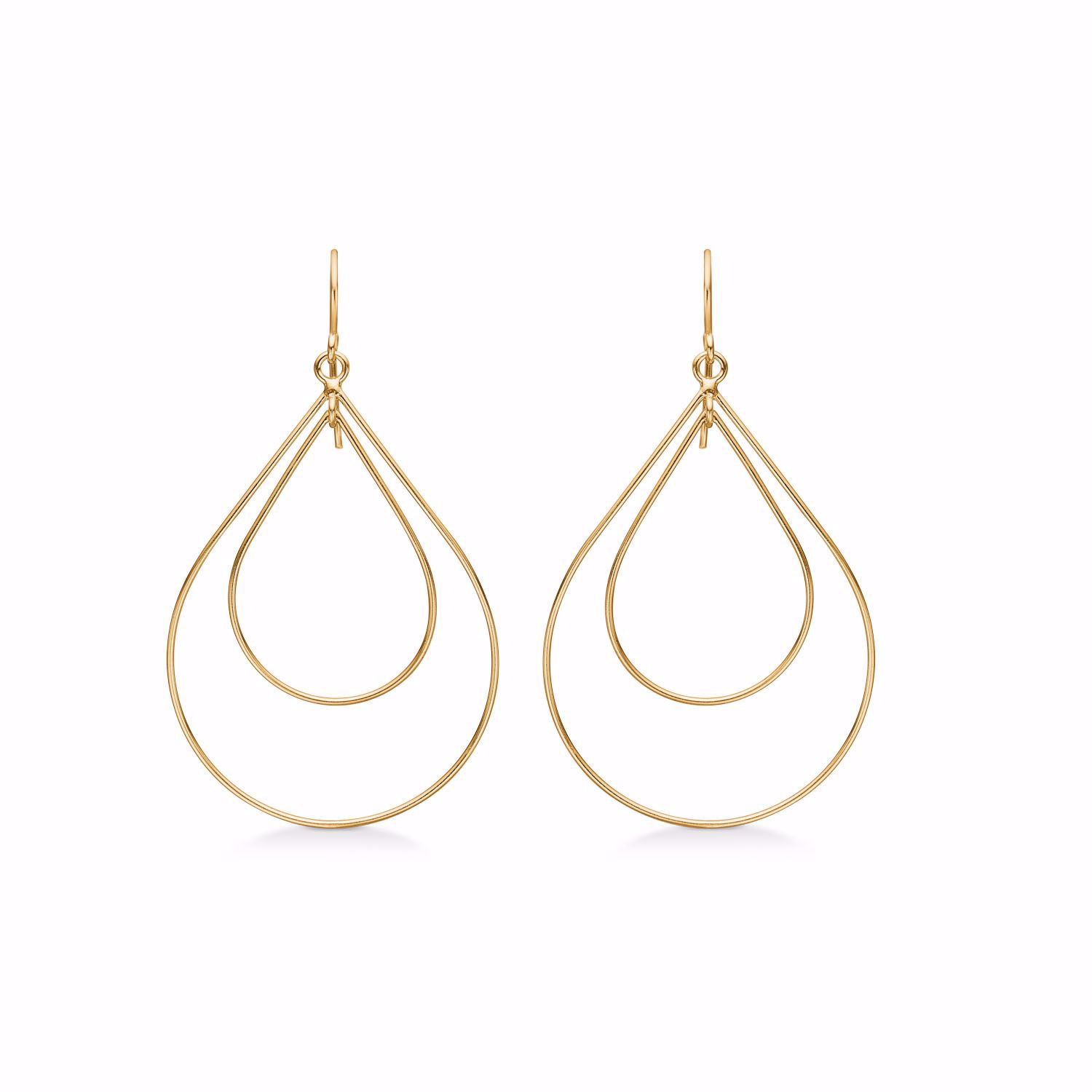Disse elegante forgyldte GENNA øreringe har et smukt og let design, der giver et stilfuldt og sofistikeret udtryk. Øreringene består af fine dråbeformede tråde i en minimalistisk stil, hvilket skaber en dynamisk og elegant effekt. GENNA øreringe er til dig der ønsker store øreringe uden at de bliver for tunge.
