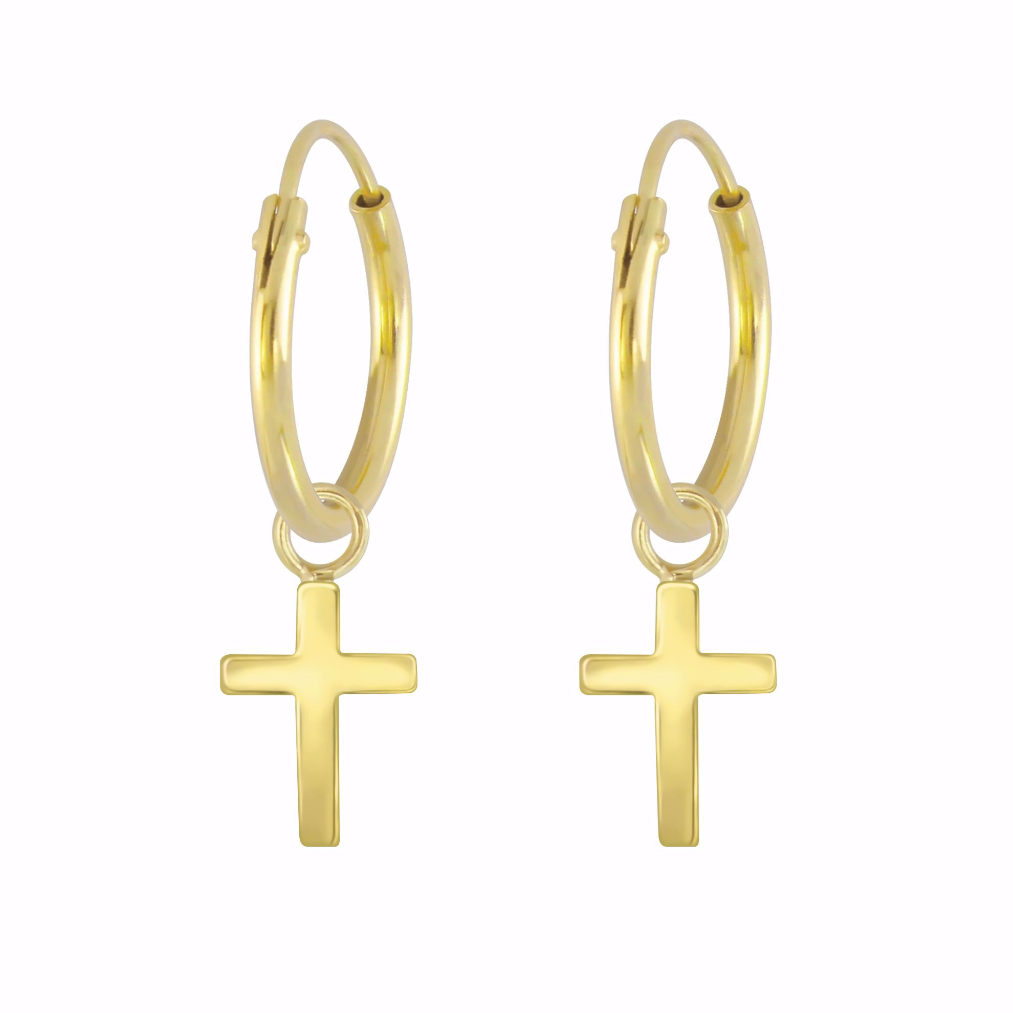 Creoler / hoops med små kors vedhæng i forgyldt sølv.
