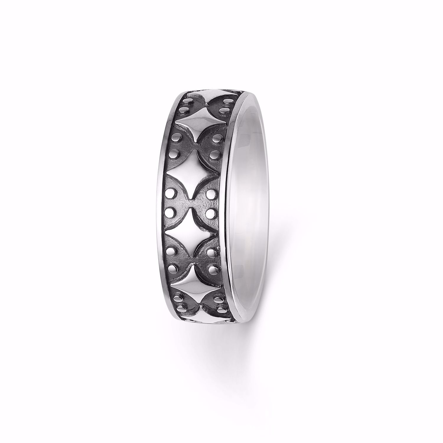 Sort oxideret herre sølvring med mønster - Guld & Sølv Design