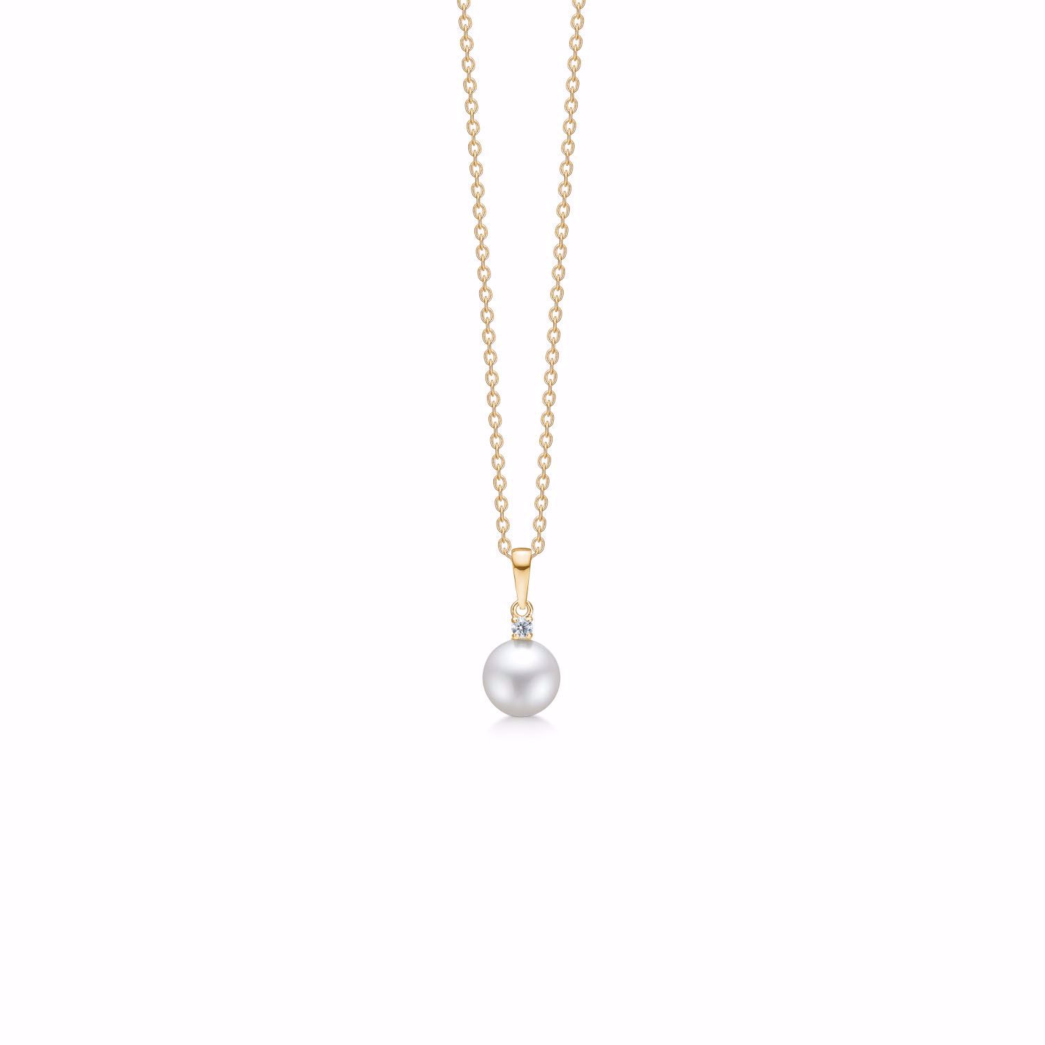 Halskæde med 14kt perle & diamant vedhæng – Guld & Sølv Design 8279/7/14