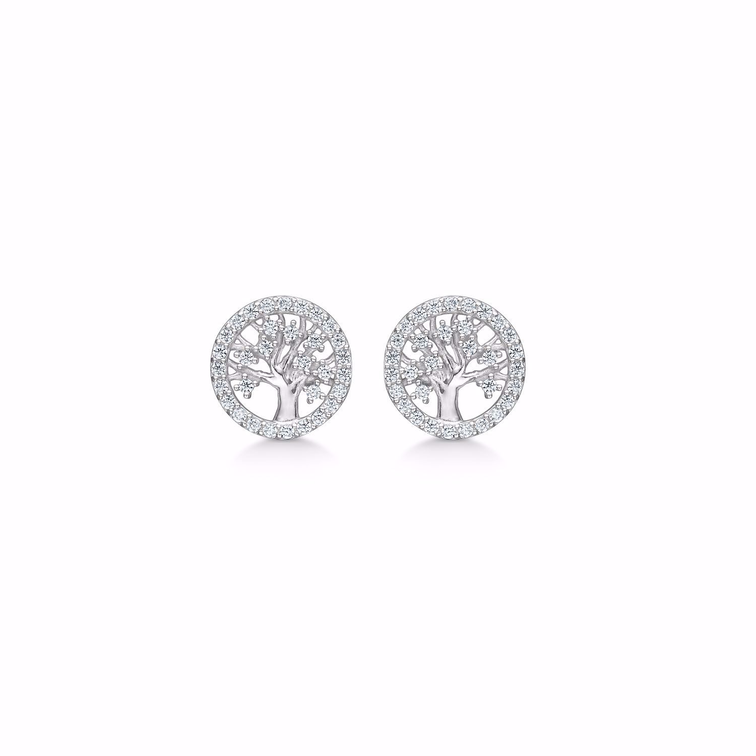 Livets træ ørestikker i sølv med zirkonia sten fra Guld & Sølv Design.