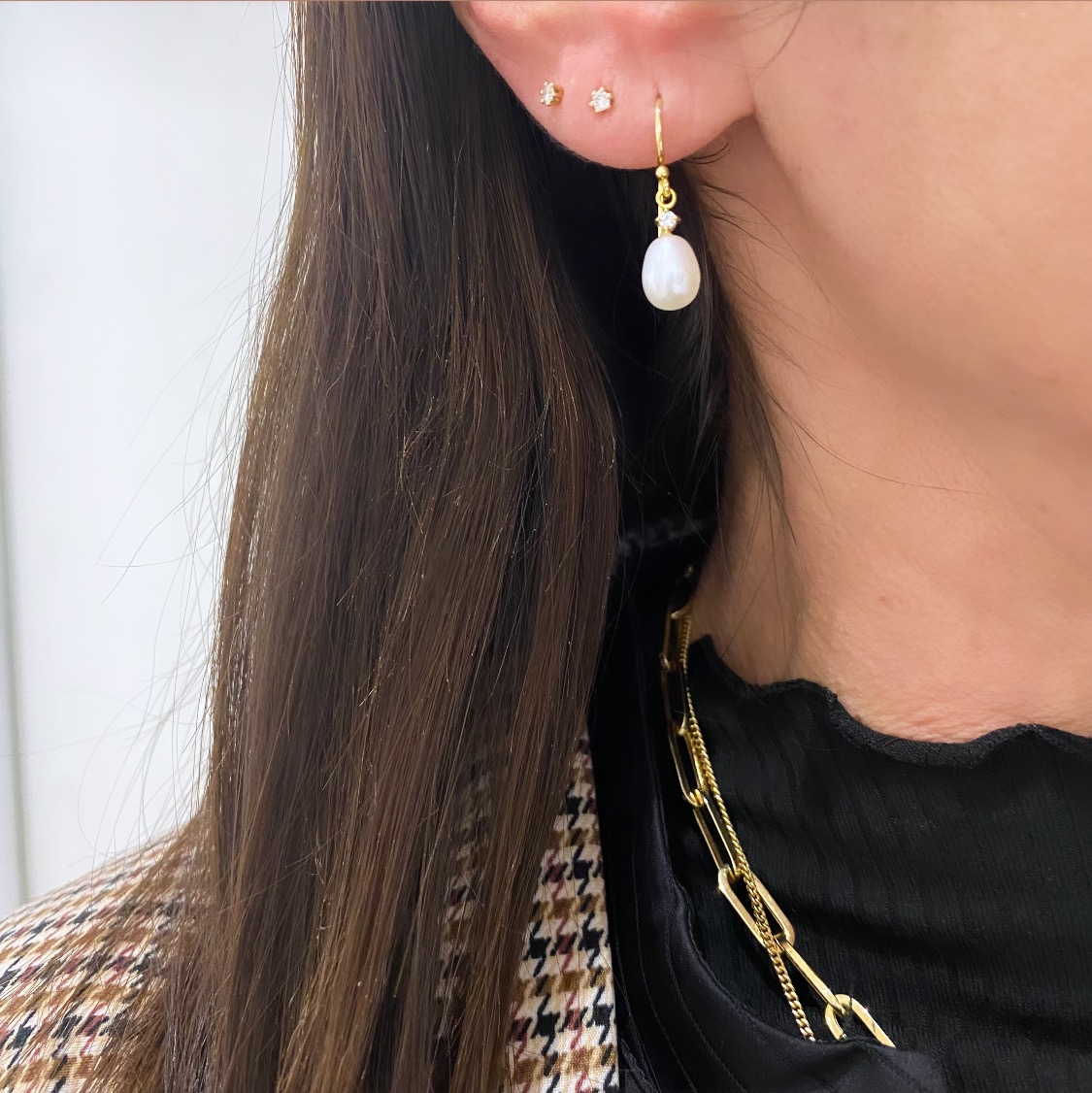 - Har du flere huller i ørerne og ønsker et klassisk look kan de nemt styles sammen med små zirkonia ørestikker med grabber Ørestik 2mm zirkonia sten i 925 sterling sølv