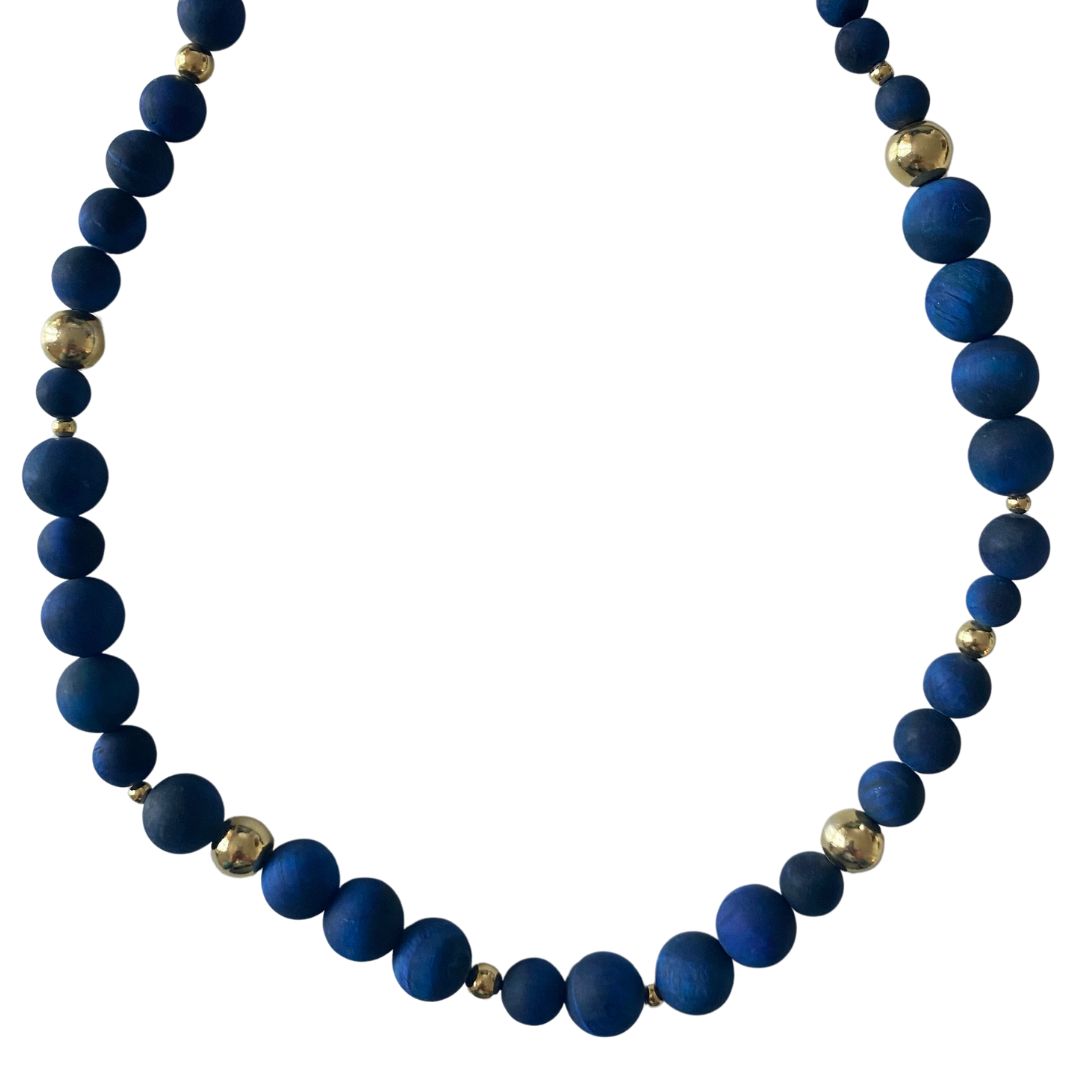 Super flot sten halskæde med de lækreste tigerøjesten i en kraftig blå farve. Halskæden er dekoreret med små forgyldte 925 sterlings sølv kugler.