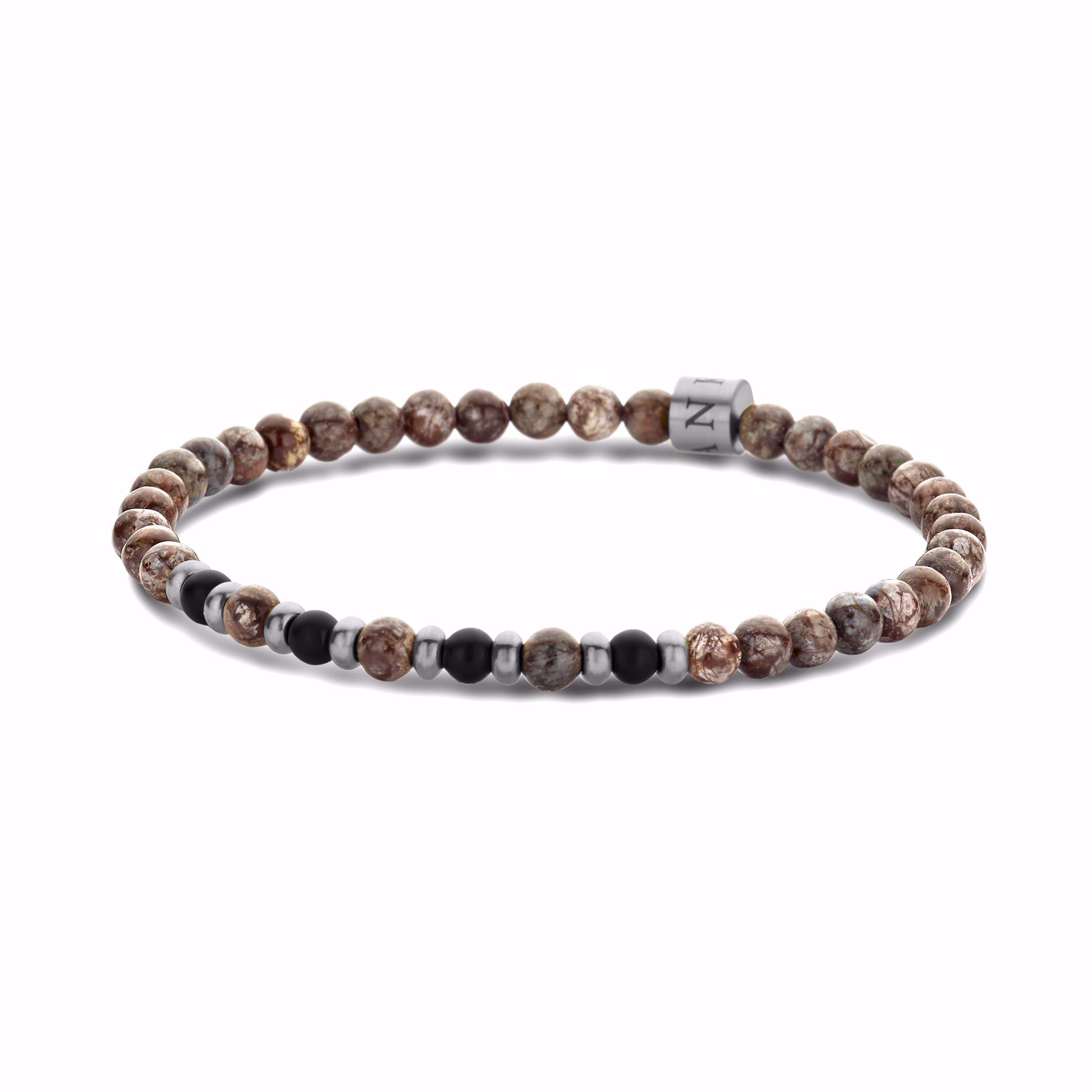 Armbånd til manden med sorte agat sten & brune sten.