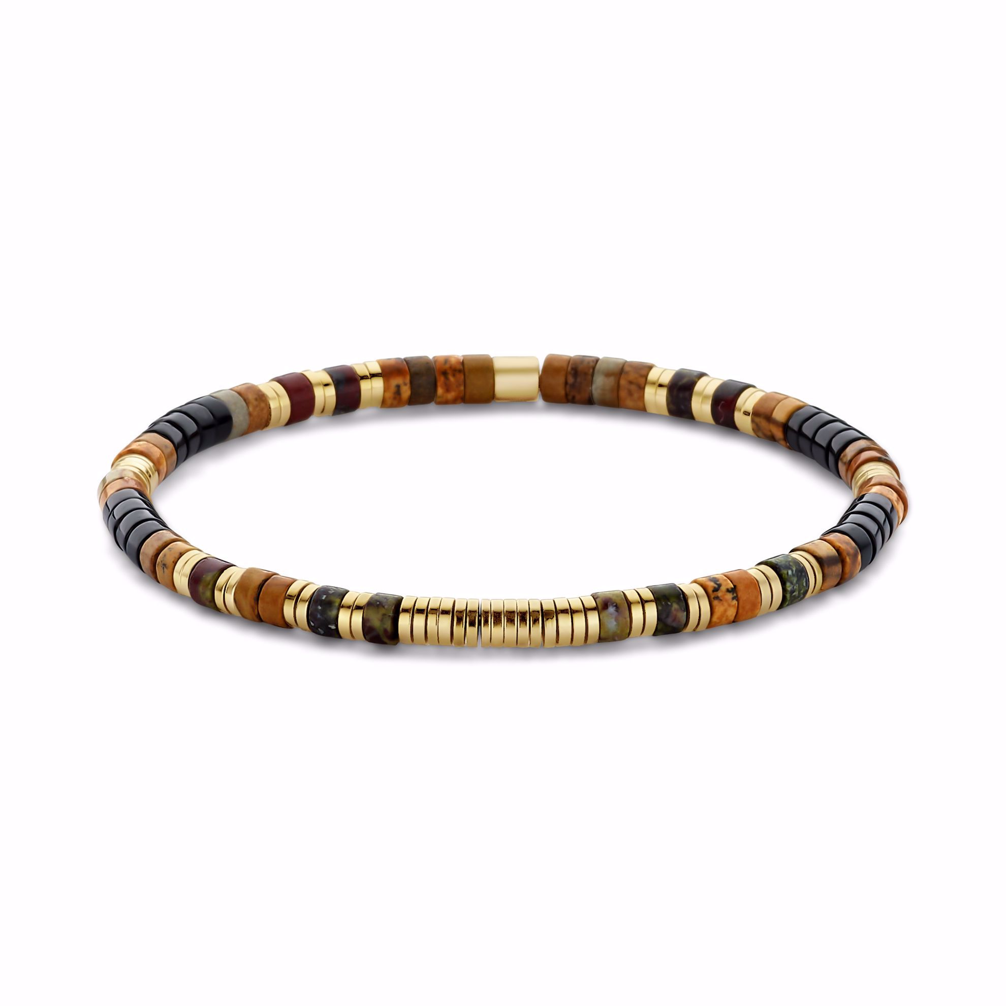 Armbånd til mænd i de lækreste brunlige nuancer med guldfarvet stål. Frank1967 armbåndet er med elastik og er i onesize.