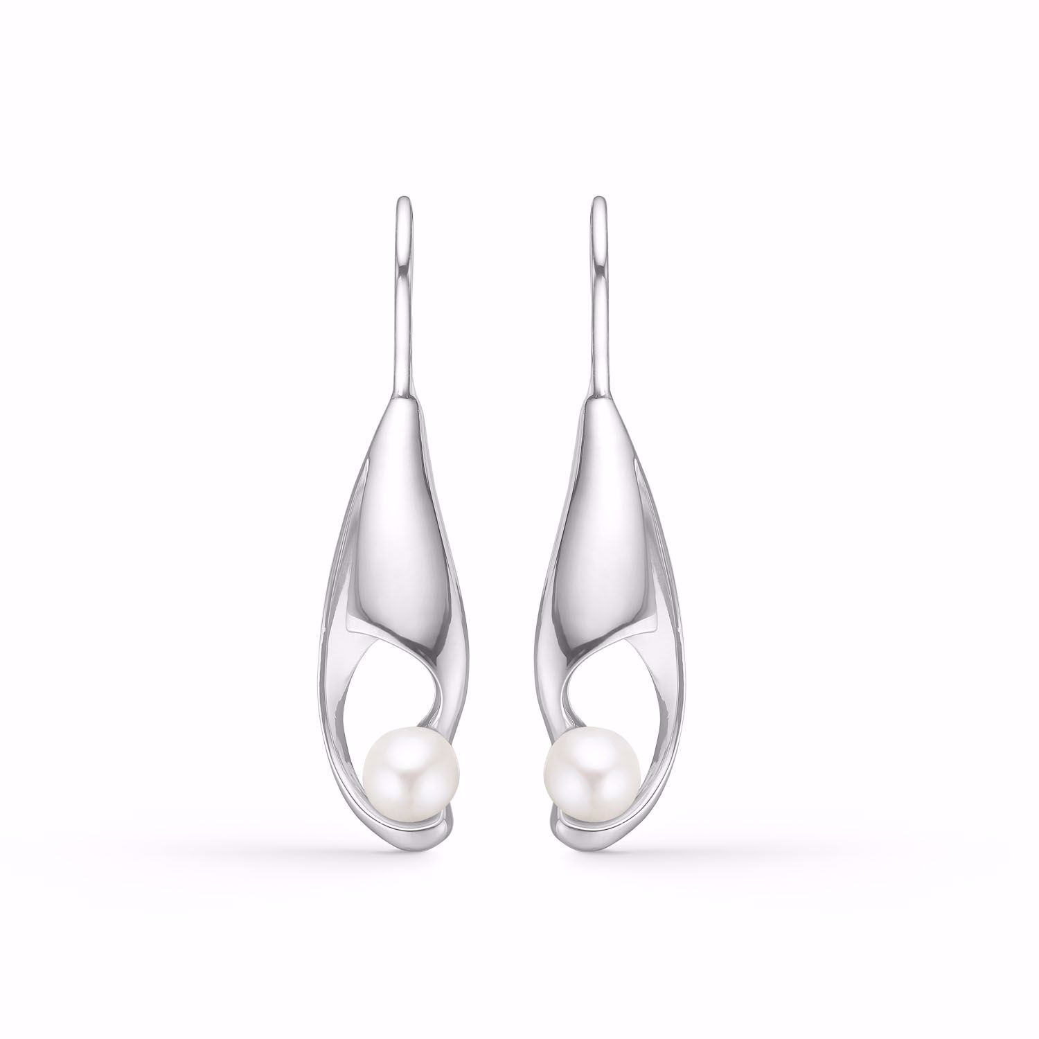Lange sølv øreringe med ferskvandsperle - Guld & Sølv Design 2025/1