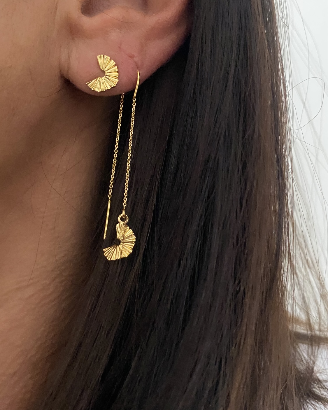 Tilføj et elegant og unikt touch til dit look med disse smukke Selma øreringe fra smykkemærket Seville Jewelry. Disse iøjnefaldende øreringe er udført i smukt, poleret forgyldt sterlingsølv og har et organisk, vifteformet design med fine, radiale linjer.
