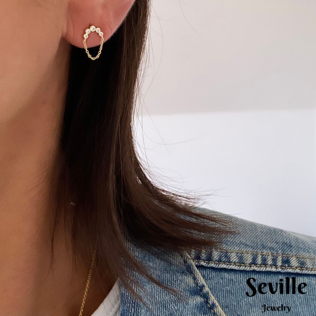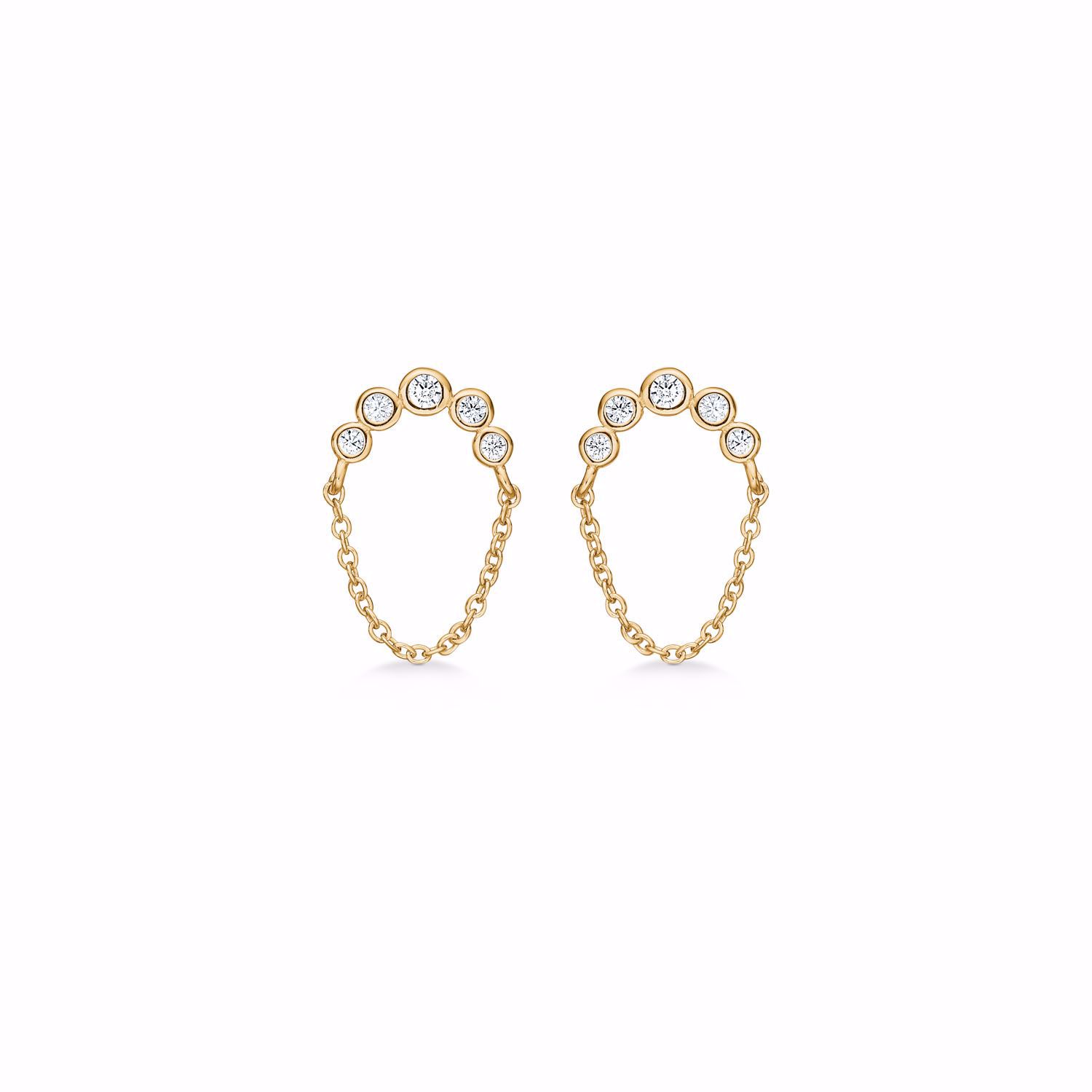 Øreringene er designet som en bue med en kæde under buen. I selve buen sidder små klare zirkonia sten.