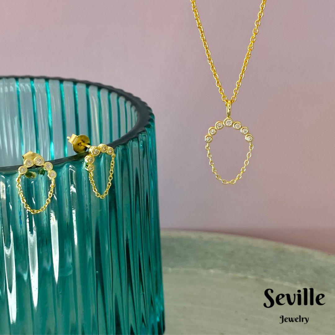 Seville Jewelry forgyldte øreringe med kæde 2031/1/F