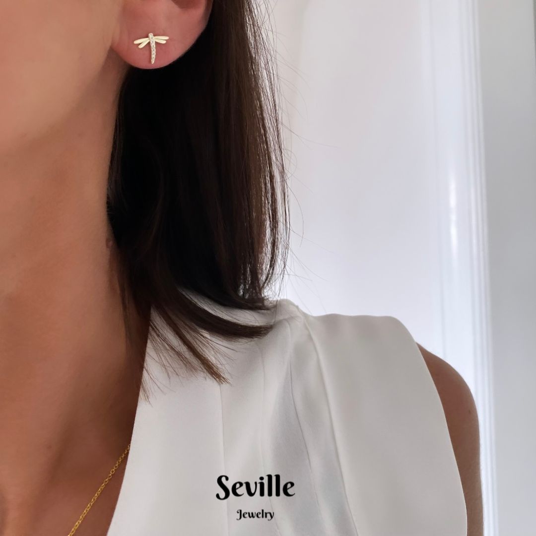 Fine ørestikker med en guldsmed. I guldsmedens krop sidder små klare zirkonia sten.