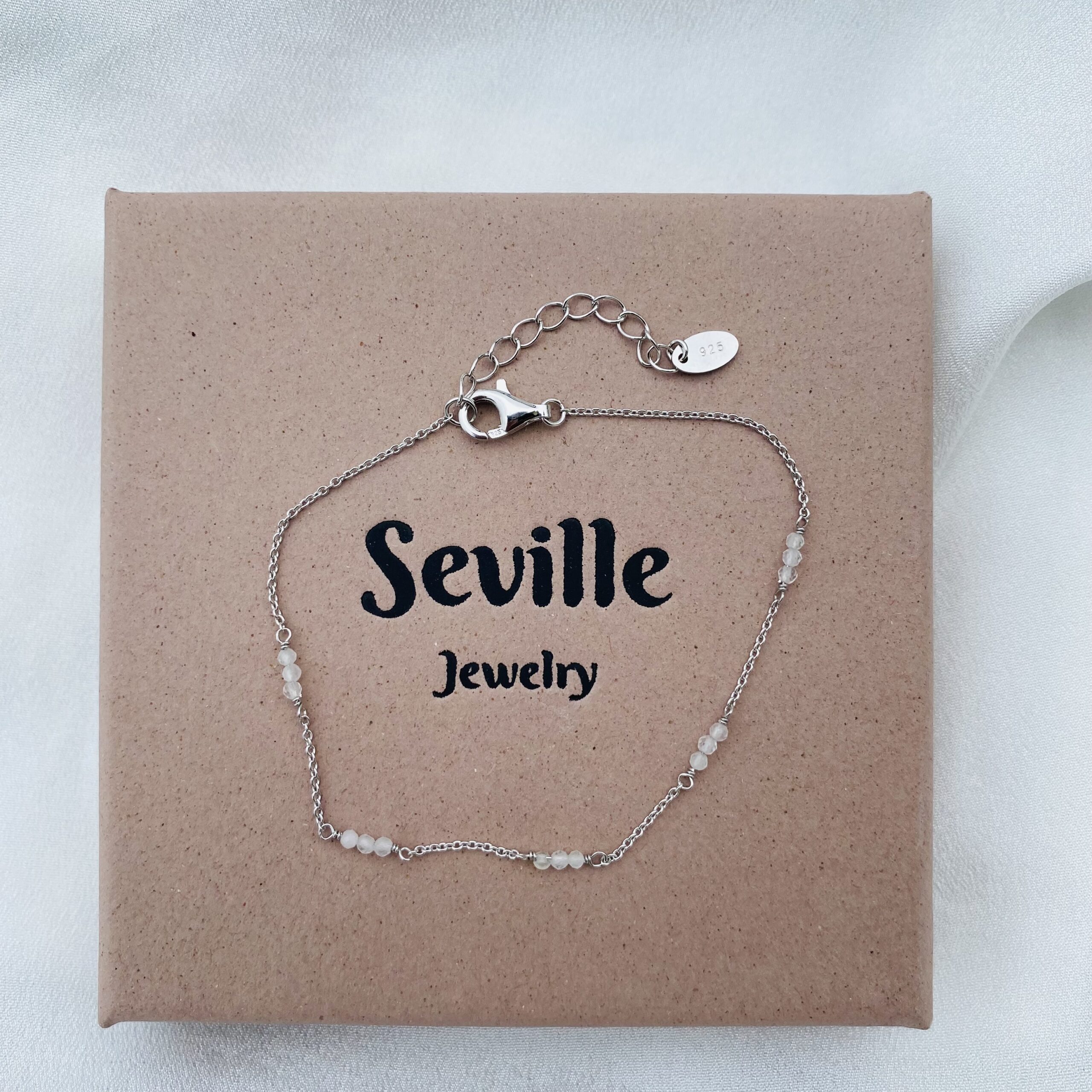 Dette armbånd fra Seville Jewelry er lavet i 925 sterling sølv og designet med små rosa kvartssten fordelt langs den fine kæde. De rosa farvede sten giver et blødt og feminint udtryk, mens den tynde sølvkæde holder designet let og elegant. Kombinationen af sølv og rosa kvarts skaber et rent og romantisk look.