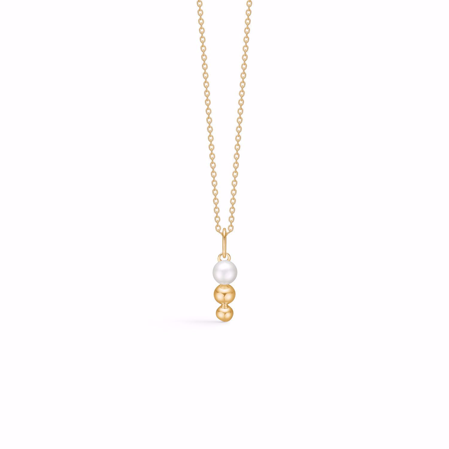 I vedhænget sidder én hvid ferskvandsperle & 2 små forgyldte kugler