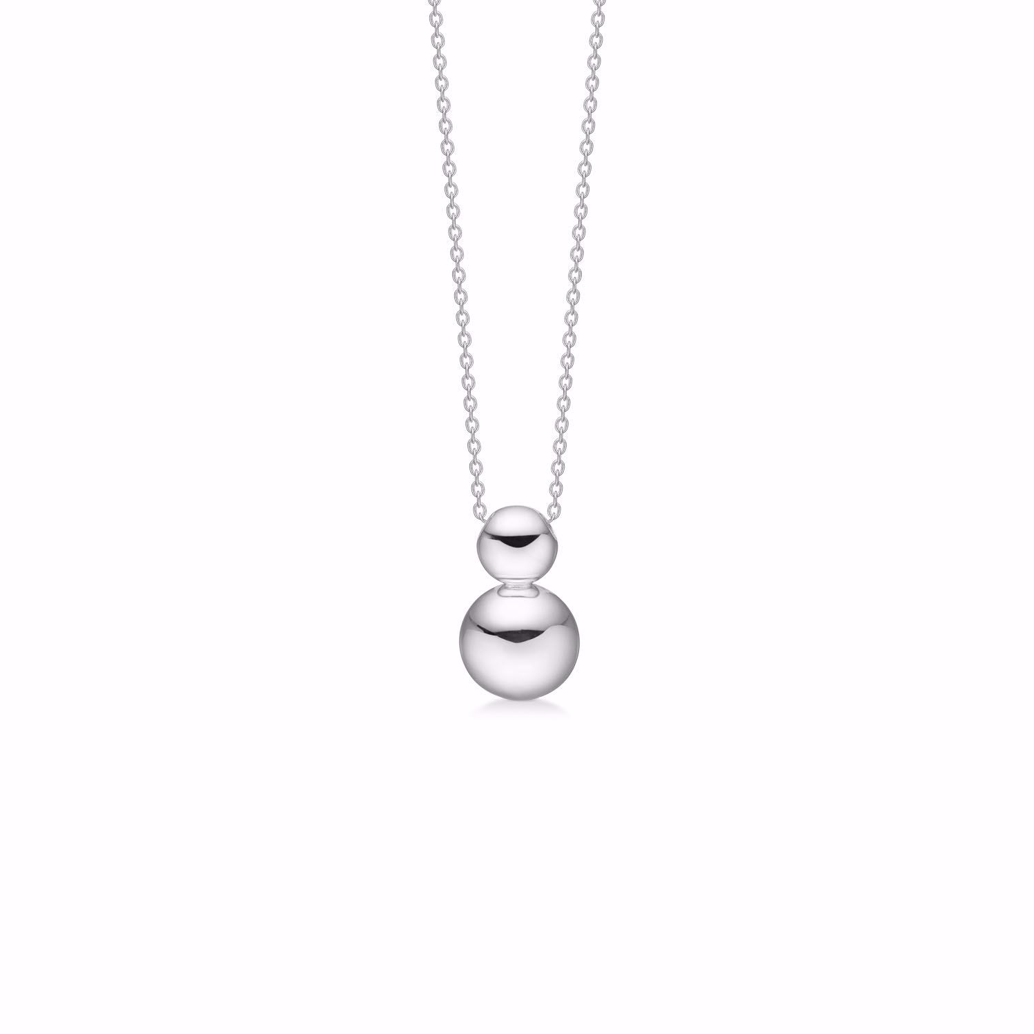 Vedhænget er sammensat af to halv kugler i varierende størrelser, som hænger harmonisk ned fra kæden.