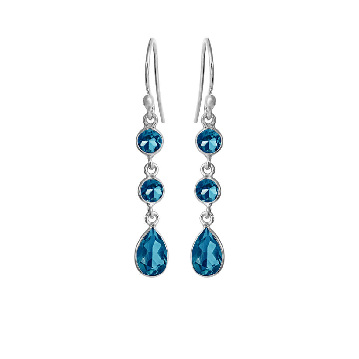 Øreringene er i sterling sølv med 3 facetterede london blå krystaller.